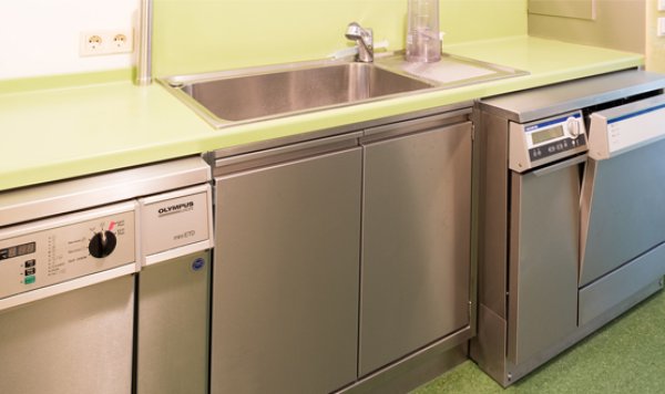 Frau Dipl. Ing. Gritli Ramschag hat beide Umbauen betreut und ist mit den Leistungen der METAGRO Edelstahltechnik AG zufrieden. „Ich kenne die Firma METAGRO schon sehr lange. Sie ist zuverlässig und liefert wertbeständige Produkte. Außerdem erfüllt METAGRO die Hygienestandards, die im medizinischen Bereich notwendig sind. Bei diesem Umbau war es vor allem wichtig, dass wir individuelle Lösungen bekommen, besonders die Ladenhöhe und - größe betreffend. Wir haben z. B. eine Ecklösung, dahinter sind Geräte, ein medizinischer Eisschrank und eine Aufbereitungsanlage. Diese haben eine gewisse Größe und hätten nicht in eine Front wie eine normale Küchenzeile gepasst. Jetzt kann der Raum, der ja ein Untersuchungs- und Eingriffsraum ist, trotzdem schön wirken.“