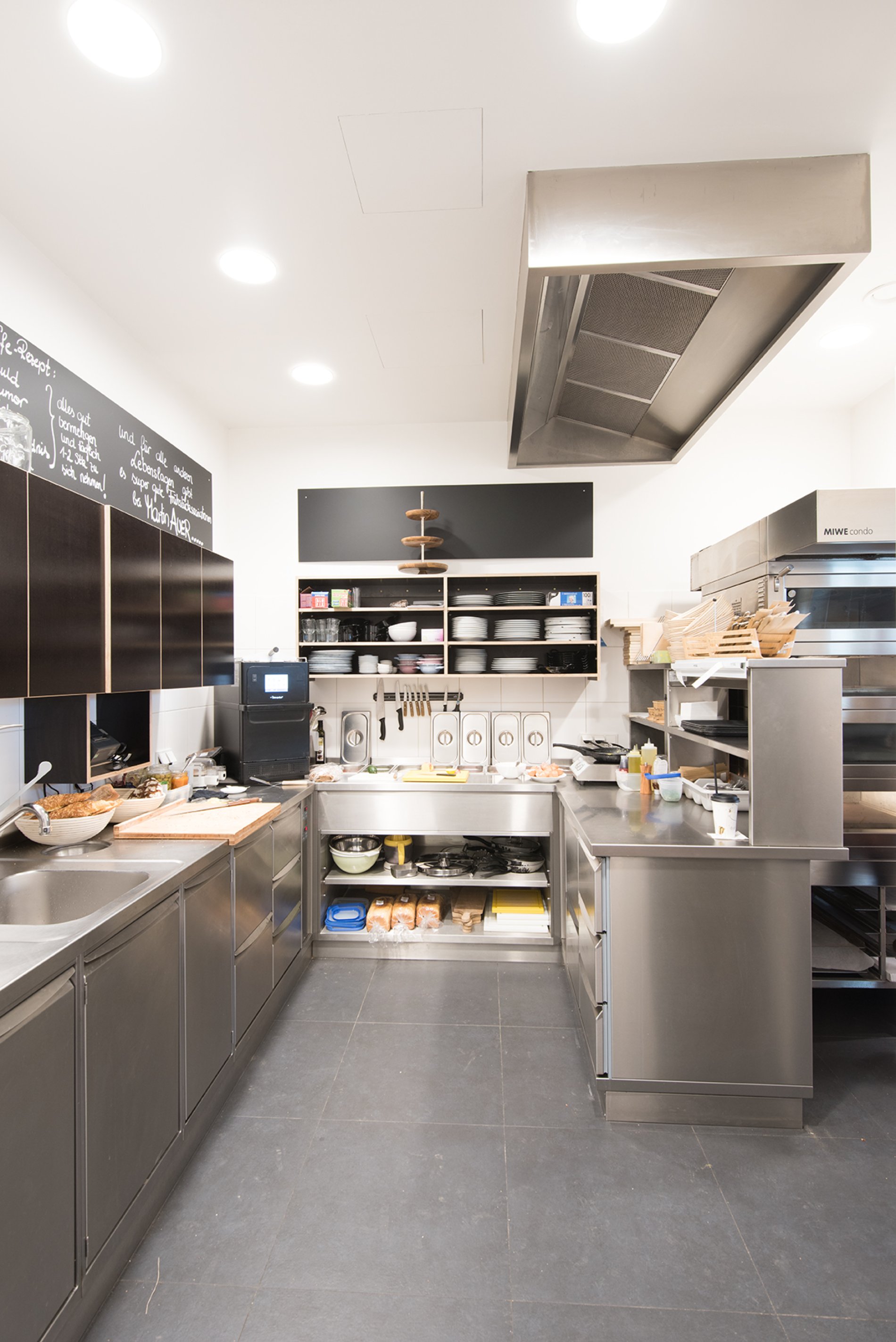 Die neue Straßganger Café-Filiale bietet mit ungefähr 80 Sitzplätzen einiges an Raum für eine Vielzahl von Gästen. Von Bio-Broten, frischem Gebäck, Mehlspeisen, bis hin zu Kaffee und kleineren Snacks ist für jeden etwas dabei - egal ob im gemütlichen Ambiente vor Ort oder zum Mitnehmen. Da herausragende und filialenübergreifende Qualität natürlich in gewisser Weise auch von den verwendeten Küchenmöbeln abhängt, wurden wir gemeinsam mit dem Kältetechnikunternehmen Pammer dazu beauftragt, unsere Expertise im Edelstahltechnik-Bereich in Form von Großküchenmöbeln für das Straßganger Café von Martin Auer beizusteuern.