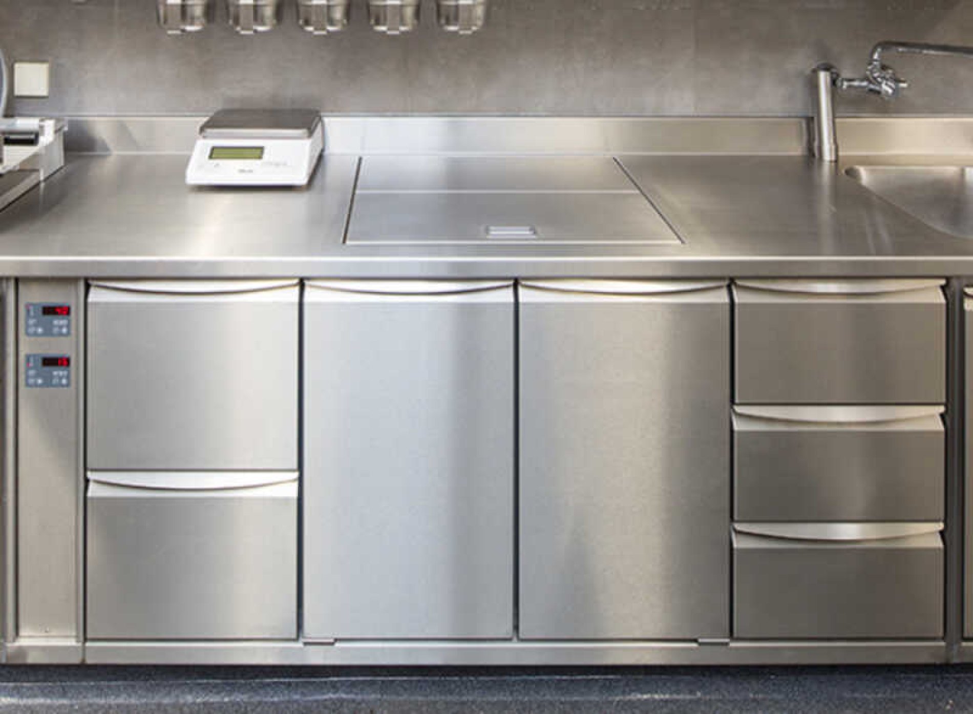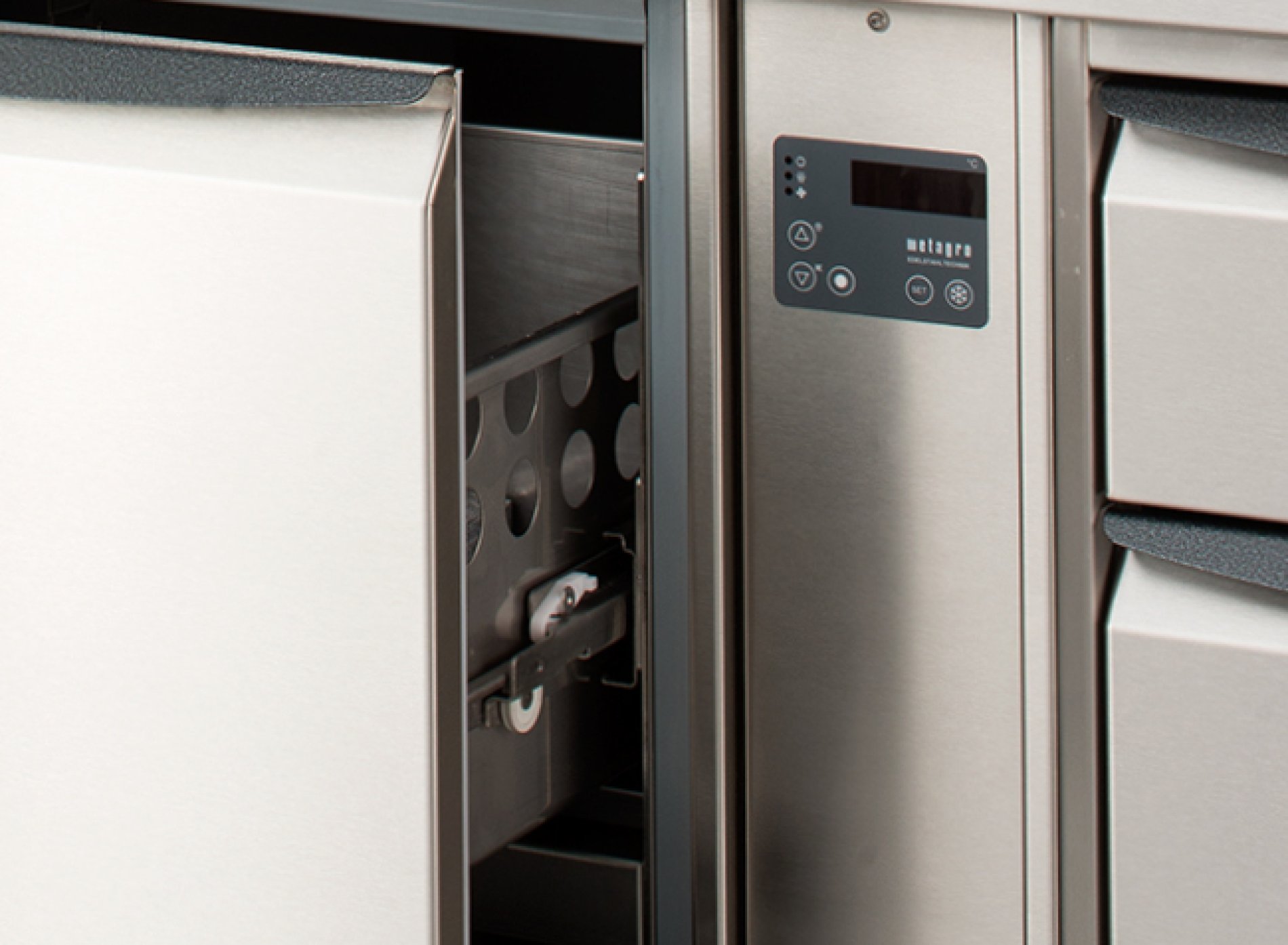 Die Verarbeitung von Edelstahl und die Fertigung von kältetechnischen Geräten zählen zu den großen Stärken von METAGRO. Da uns auch der Umgang mit Hygiene-Standards naturgemäß leichtfällt, fertigen wir unsere GastroNorm-Kühlungen von Haus aus in Hygiene H1 nach DIN 18865-9. Zusätzlich ist auch die Design-Ausführung mit der geschwungenen Hygiene-Griffleiste bei unseren Kühlmöbeln Standard.