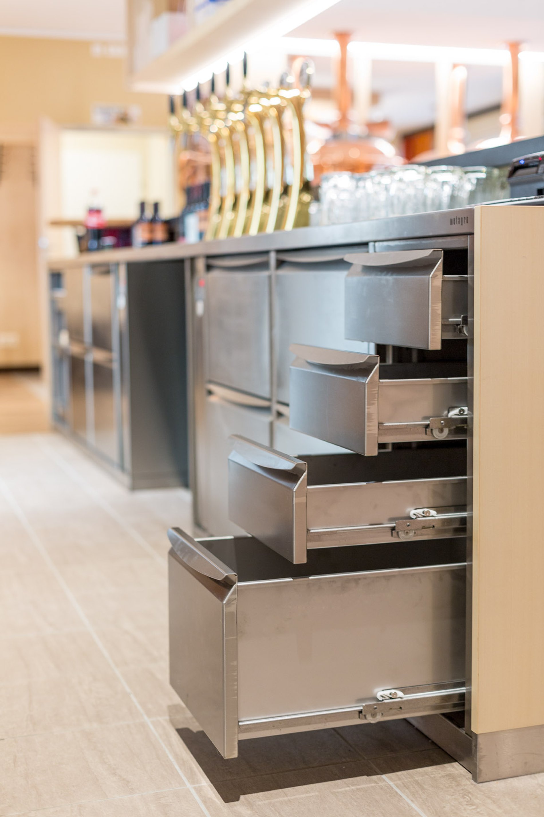 Die Brauanlage wurde gemeinsam mit der Firma Schlögl in Kooperation mit METAGRO entwickelt. Dafür war Altbürgermeister Bosch auch zu einer Werksbesichtigung vor Ort in Hainfeld. Er zeigte sich dabei beeindruckt von der modernen Fertigung, den hervorragenden Produkten und der kompetenten Betreuung durch die MitarbeiterInnen. Auch das Tochterunternehmen von METAGRO, die Firma RECH, war als Partner für die zentrale Kälteversorgung und die erforderlichen Kühlhäuser in das Projekt involviert. So kam es, dass die Brauanlage, die Kältetechnik und auch die Schankmöbel inkl. Getränkekühlung und Küchenmöbel von METAGRO stammen.
