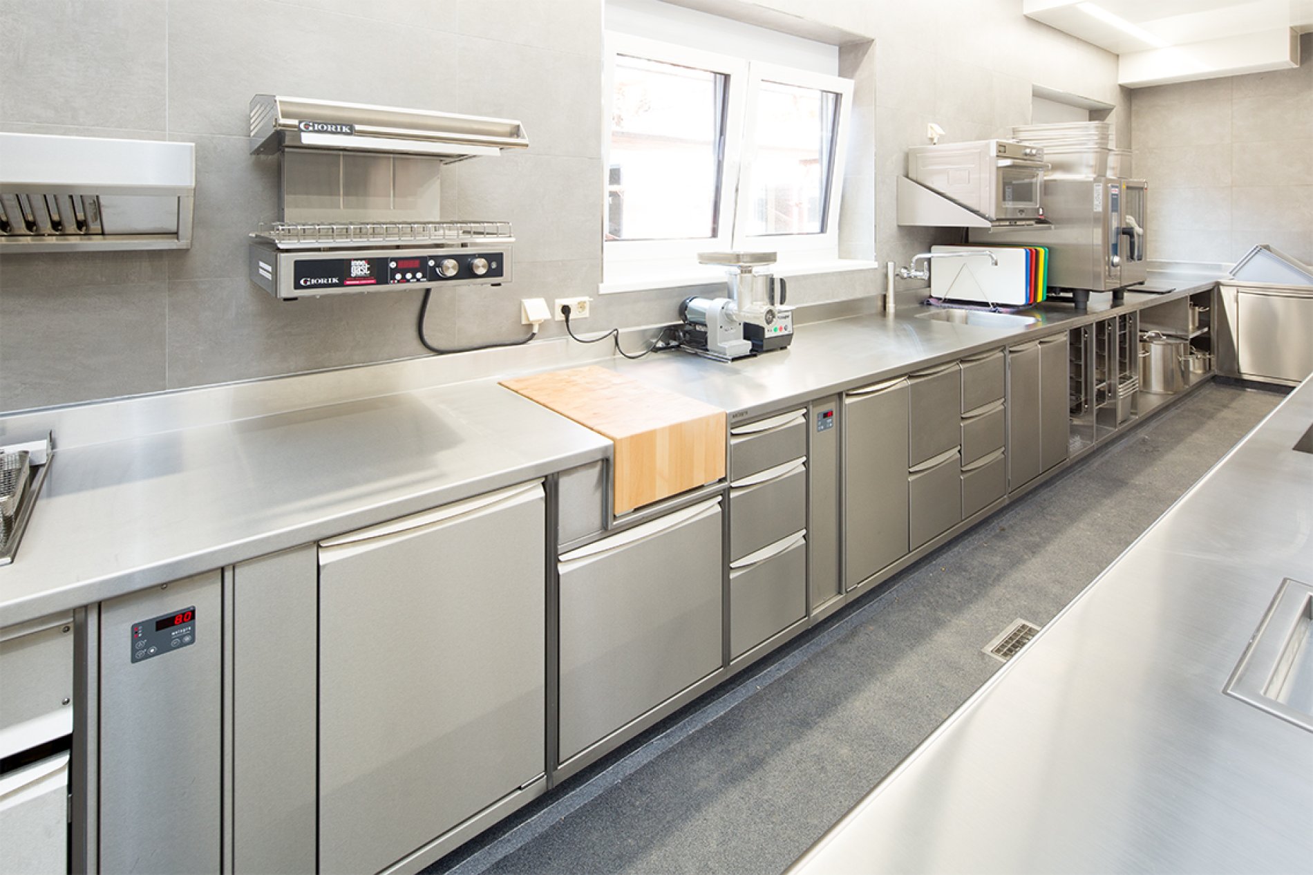 Das kulinarische Angebot des Gasthauses beinhaltet sowohl tägliche Mittagsmenüs als auch à-la-carte Essen und mit seinem umfangreichen Platzangebot bietet es seinen Gästen auch die Möglichkeit, Feiern und Feste aller Art zu feiern, egal ob im privaten oder geschäftlichen Rahmen. Um die hohen Qualitätsstandards ganzheitlich erfüllen zu können, entschloss sich der Inhaber Gernot Schmidt, welcher bis auf das Gasthaus zum Hof auch noch drei weitere Lokale betreibt, für langlebige und hochwertige Großküchenmöbel von METAGRO.