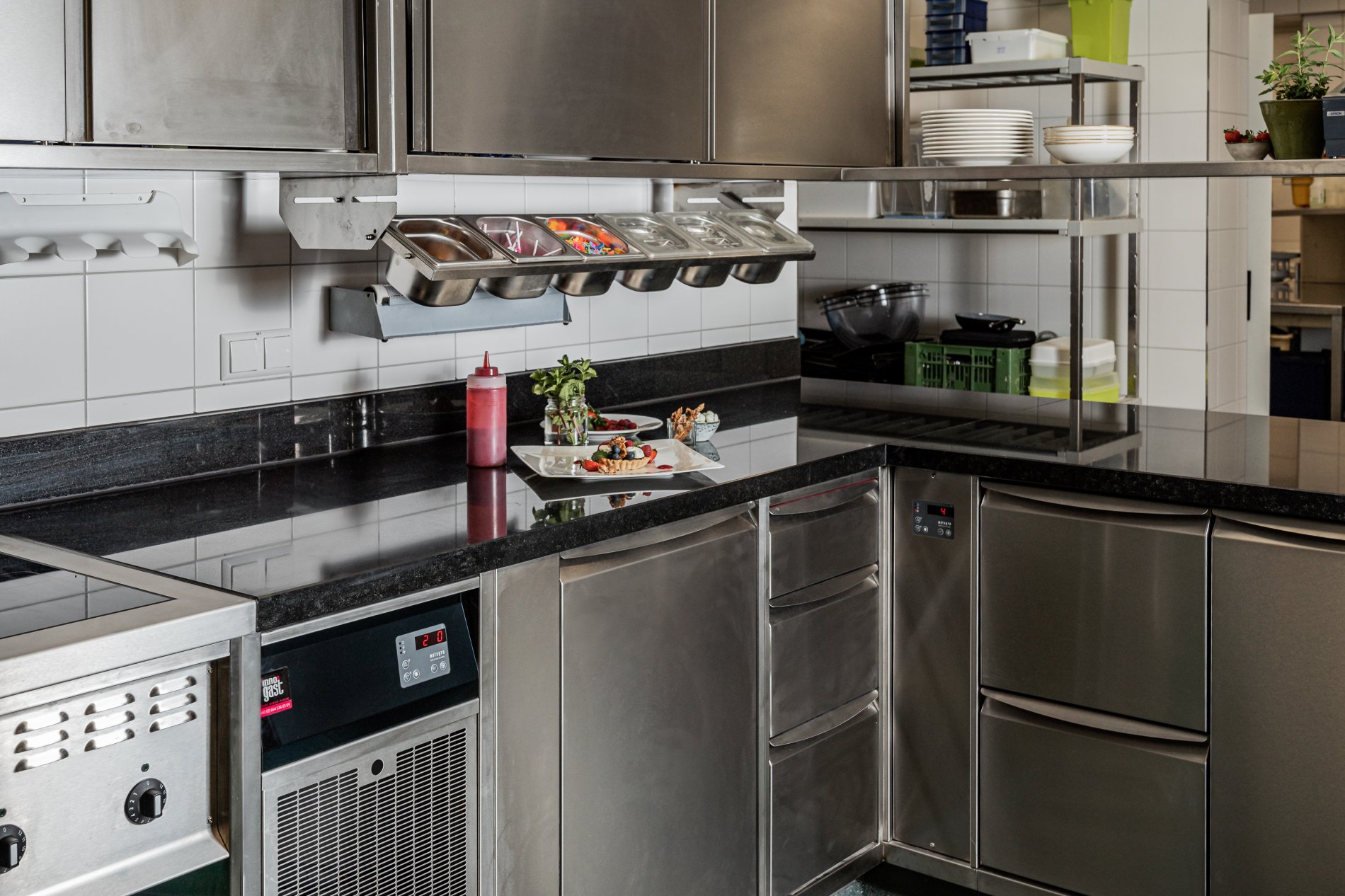 Das Hotelrestaurant kann sich ebenso sehen lassen: Gemäß dem Leitsatz „Fairness, Regionalität und Qualität“ glänzt die Karte des Restaurants mit unterschiedlichsten Leckerbissen, ganz gleich ob vegetarische, vegane oder eher klassische Gerichte wie Rind, Schwein oder Fisch. Unabhängig davon, für welche Speise man sich letzten Endes entscheidet, die sonnige Terrasse bietet das nötige Ambiente um das Bestellte bei einem Glas Wein angemessen genießen zu können. Es freut uns deshalb umso mehr, dass METAGRO gemeinsam mit der Firma Innogast die Küche des Hotelrestaurants mit Großküchenmöbeln ausstatten durfte.